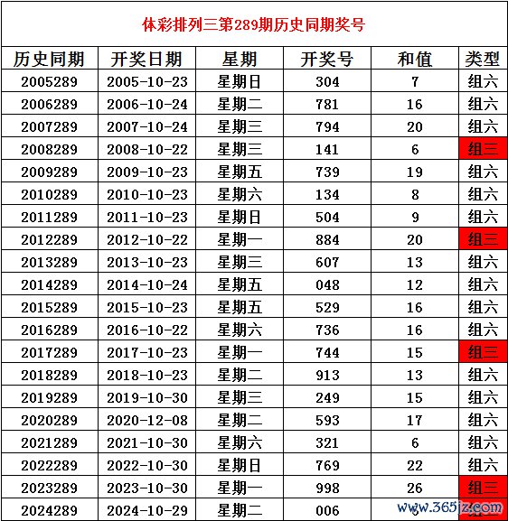 2025年10月30日罗列三第289期开奖,历史同本事别开出奖号: