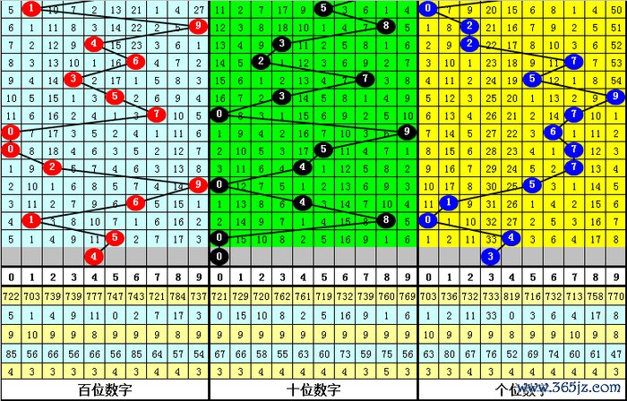 另外,在历史同时开奖中,号码0-9折柳出现: