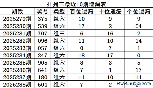 上期总结:陈列三第2025288期奖号:504,组六,直选遗漏总值为36期。